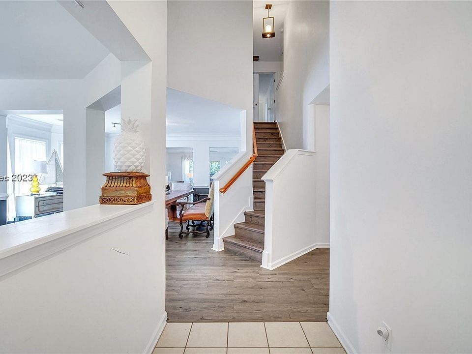 Welcome to 95 Crossings Blvd! This beautifully maintained 3 bed 2.5 bath home boasts just under 2200sq ft and features a large great room, eat-in kitchen, and first floor office/flex space. The primary suite features a large walk-in closet and ensuite with double vanities, walk-in shower, and garden tub. Upstairs you'll find 2 additional bedrooms and guest bathroom. The fenced yard over looks a peaceful lagoon. The neighborhood boasts a community pool, playground, pickleball courts, and optional golf membership. Pinecrest is perfectly situated with easy access to beaches, shopping, and dining. Roof replaced in 2021. 2023-08-01