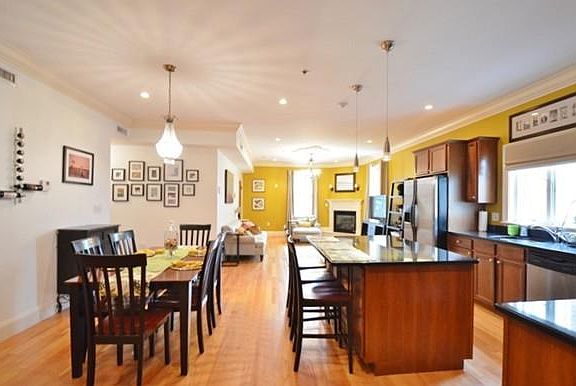 Spectacular unit in a highly sought after Dorchester location! This well maintained 2 bedroom, 2 full bath condo has it all! Bright open floor plan is great for entertaining. Kitchen features; cherry cabinets, S/S appliances, granite countertops, recessed lighting and Island breakfast bar! The living room/ dining room combo offering elegant detailed crown molding, high ceilings with chandelier, recessed lighting, gas fireplace and gleaming hardwood floors! Large Master bedroom comes complete with; Vaulted ceiling, crown molding, his & hers closets and en suite bath providing Jacuzzi tub and separate shower! In unit laundry, central A/C, plenty of storage space w/ additional storage in basement and 1 assigned parking space complete this package! Low condo fee & conveniently located near public transportation and Rt 93. Don't miss out on this one, nothing to do but move in!