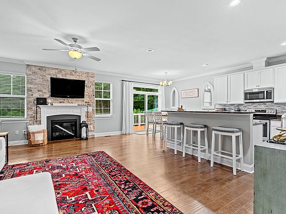 Charming Ranch on a generous 1-acre lot! This home boasts a striking stone exterior and an open floor plan, featuring a dining area with sliding doors that lead to an extended rear deck and private backyard—perfect for entertaining around the grill and and pool area. The main floor includes a spacious master suite with a walk-in closet and en-suite bath, a cozy living room with hardwood floors and a gas fireplace. Upstairs, a finished bonus room offers potential as a 4th bedroom, while the walk-in attic provides ample storage or the opportunity to create an additional room. Experience added charm with built-in shelving, crown molding, an extended driveway, and elegant hardwood floors. Plus, there's no HOA! This is your chance—don't miss out!
