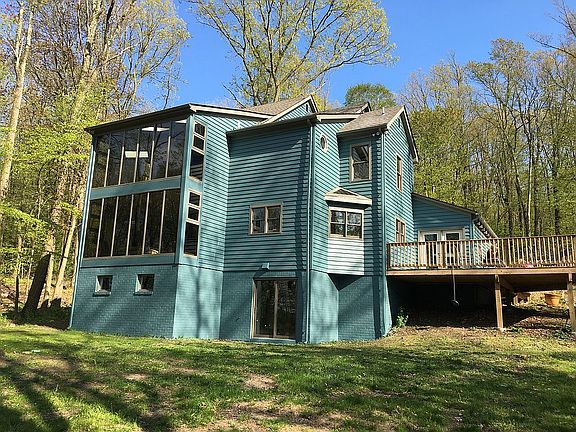 Welcome to 95 Edgewood Drive, a stunning 5-bedroom, 3.5-bath home nestled on a private wooded 4-acre lot. The winding driveway leads to a courtyard between the main house and two detached two-car garages, providing ample parking space. Upon entering the three-story foyer with pristine hardwood floors, you'll find a well-appointed study on the right. This tranquil space features handsome wainscoting trim, recessed LED lighting, and hardwood floors, offering a perfect retreat from the busy areas of the home. The nearby powder room adds convenience to the main floor. The heart of this home is the magnificent gourmet kitchen, adorned with white Quartz counters, a center island with seating, and upgraded cabinetry with soft-close features. Tiled floors and cobalt subway tiles add a touch of color, while the stainless gas range, complete with a power hood vent and a pot filler, caters to culinary enthusiasts. A beverage refrigerator, large pantry, and ample LED lighting make this kitchen both stylish and functional. Connected to the kitchen is the cozy family room, featuring a vaulted ceiling with exposed beams and a shiplap accent wall for a rustic touch. A sliding door opens to the wrap-around deck, ideal for outdoor dining and enjoying the natural beauty surrounding the home. The living room on the main floor is equally impressive with floor-to-ceiling windows, crown molding, wood floors, and recessed lighting. The second floor hosts the exquisite Owner's Suite, complete with a large walk-in closet and a private tiled bath featuring a frameless shower and dual vanities. The bedroom itself boasts a vaulted ceiling and floor-to-ceiling windows offering breathtaking views of the yard and woods. Two additional well-sized bedrooms, a full hall bath, and a spacious second-floor laundry room complete this level. The third floor accommodates two more bedrooms and a full bath. The walk-out daylight basement is finished into storage rooms and a workshop. The home is equipped with Lennox High-efficiency HVAC and multiple mini-split systems for comfort. Outside, a detached pole barn provides parking for two vehicles and space for toys, while an additional two-car garage includes a concrete pad and electric hookup for a future hot tub. This home is truly special and must be seen in person to appreciate its unique features and stunning surroundings. Schedule your appointment today to experience the charm of 95 Edgewood Drive. 2023-10-13