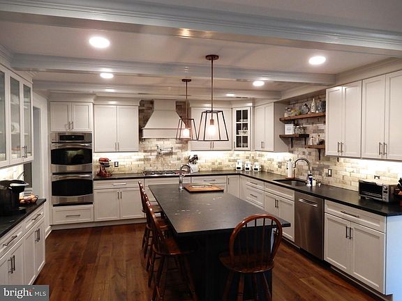 - Ceiling Fan(s), Kitchen Island, Recessed Lighting, Walk-In Closet(s), Built-Ins, Crown Molding, Exposed Beams, Open Floorplan, Wood Floors, Bar, Attic, Breakfast Area, Upgraded Countertops, Family Room Off Kitchen, Chair Railings