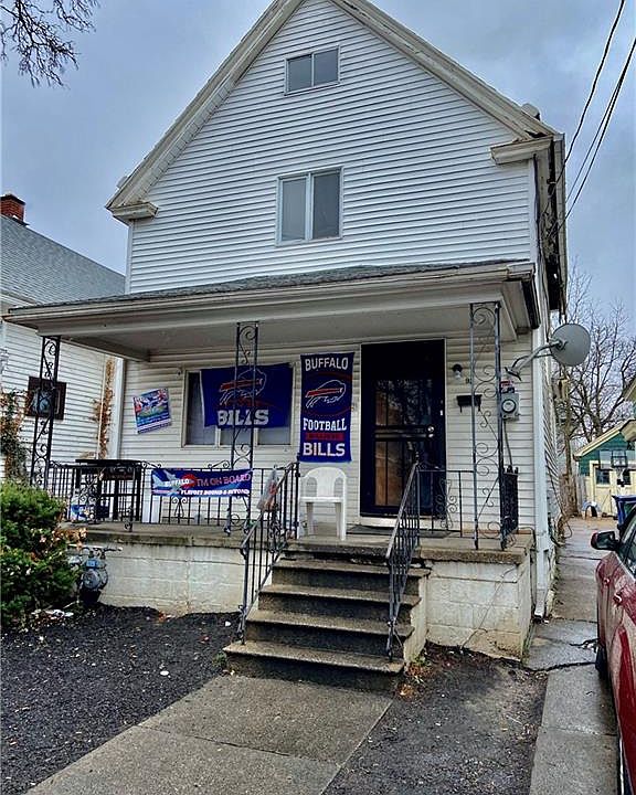 Finally an affordable option! Most of the exterior showcases vinyl siding and a large front porch to enjoy the seasons change. The backyard is quite large with parking pad. Inside you will find a very functional and good flowing floor plan. The large kitchen features wood cabinets. Living room flows into the dining room for easy entertaining. Full bath on the first floor. Three nice sized bedrooms on second floor and stairs that lead to an attic. Imagine the possibilities! The home could use some updating and will require a new roof, priced accordingly!
