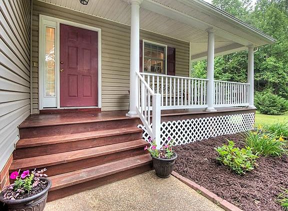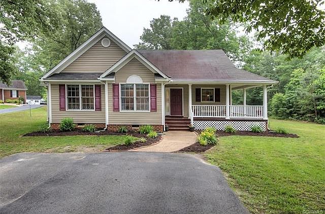 LOW MAINTENANCE RANCHER! This three bedroom two full bathroom home sits on a 2 acre partially wooded cul-de-sac lot and includes features like: a new HVAC system installed in 2016; gutter guards; low maintenance vinyl siding; wrap around porch and large deck; paved drive; detached shed and thermal windows. Inside the open floor plan, which is perfect for entertaining, boasts: hardwood flooring; a spacious kitchen with breakfast bar; vaulted ceilings; formal dining room with bay window; family room with gas fireplace; and master with five piece en suite and walk in closet. Located less than an hour from Richmond this home offers an escape from the hustle and bustle of the city without sacrificing convenience.