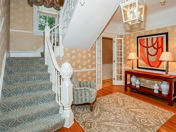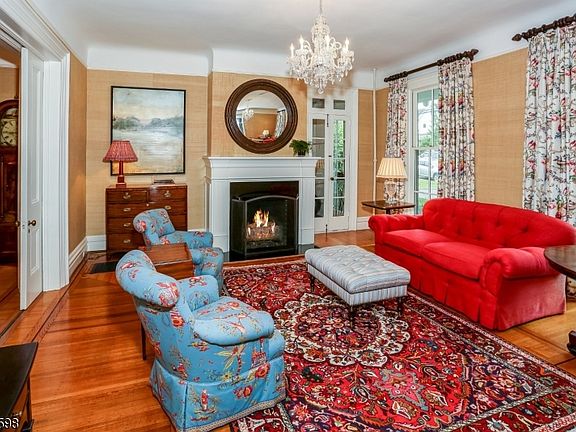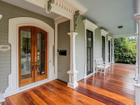 A lush green lawn and manicured shrubbery perfectly complement this Victorian era home. A paver walkway leads to the welcoming wraparound mahogany porch. The arched, side-by-side door has beveled glass panes and invites you to enter. Inside, you are enveloped in a sense of a bygone era with many original architectural details on display including gorgeous thin-planked wood floors with mahogany inlay and molding detail throughout. High ceilings add to the sense of space, while natural light cascades through tall windows. The foyer, with an ornately carved banister leading the way up the beautiful wood stairs, introduces the layout. The living room with fireplace and the banquet-sized dining room provide wonder surroundings for entertaining. The flow continues to the beautifully designed family room and kitchen. The family room features built-in and is open to the gorgeous kitchen. This inviting space with sparkling white cabinets, professional grade stainless appliances, center island with seating, and abundant windows is light filled and fabulous. Atrium doors open to the deck for ease of outdoor dining. A home office/exercise room and a lovely powder room complete the first floor. Upstairs the master bedroom with a marble, spa-like en suite bath is a private retreat. Four additional bedrooms and another stunning full bath provide personal space for the entire household. The office is an added bonus. The lower level offers more amazing space with a finished room with a kitchenette area and a stunning full bath. This remarkable home, one of the most recognizable in the borough, offers all the warmth and character of bygone days along with today's sought-after amenities.