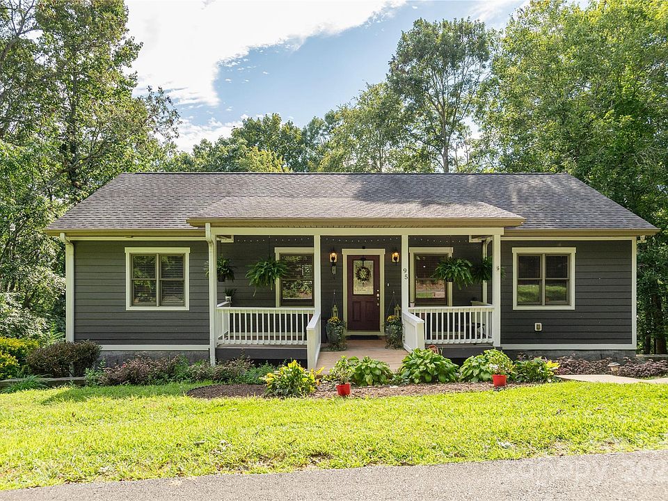 Conveniently located in Fairview, this inviting ranch offers comfortable main-level living with the bonus of finished space in a walkout basement. The home features 3 bedrooms and 3 full baths, including a primary suite with a soaker tub/shower combo. The vaulted living room ceiling and wood floors create an open and airy feel, while the kitchen shines with granite counters and a tile backsplash. A cozy fireplace adds warmth to the finished lower level, which also includes a two-car garage. Step outside to a private back deck oasis with winter mountain views and colorful sunsets. Updates include newer hardboard siding and a newer heat pump for peace of mind.