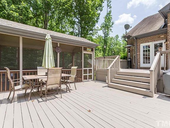 Builder's CUSTOM built BRICK HOME w/4 bedrms, study/living rm, loft & bonus rm! 2-sty open family rm w/gas log fireplace. Lots of built-ins. Open floorplan! Gourmet eat-in kitchen w/granite, stainless, breakfast bar, & pantry! Formal dining rm. 1st flr master w/spa bathrm & walk-in closet. Laundry rm on 1st flr. Fenced-in bckyrd w/screen porch & "party" decks! Beautifully landscaped & wooded 1.15 acre cul-de-sac lot w/irrigation. Low HOA. N'hood pond. 5 Minutes to Harris Teeter & Flowers Store!