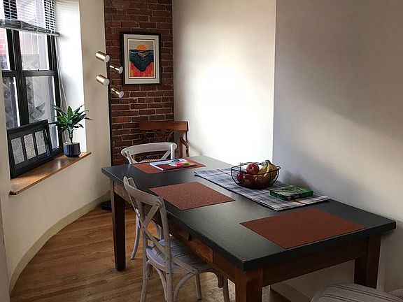 Available 9/1/25. Gorgeous sunny top floor two-bedroom condo with a beautifully laid out Eat-In Kitchen with granite countertops, nice tiled bathroom and private deck. Central heat and a/c, washer/dryer in the unit, oak hardwood floors, carpeted bedrooms and exposed brick. Elevator building with lobby intercom system. Gorgeous tree-lined street with 24 hr. security guard and daily trash pickup.