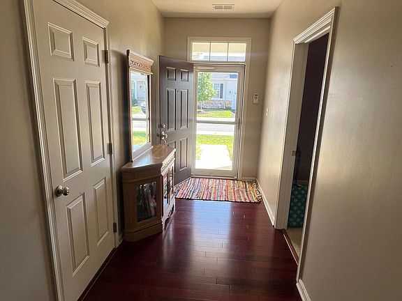 Steeple Glenn 55 and over community. This 2 bedroom, 2 bathroom townhouse condo is perfect for the new buyer looking for a one level. One car garage, cherry hardwood floors in the foyer and kitchen with complementary kitchen cabinets, island, and accented with recessed lights. Livin g room, dining room, and sliding glass doors that lead to a nice walk trail. Included are all appliances. This is one to put on your list.