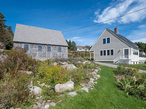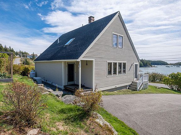 Waterfront Timberpeg home overlooking Allen Cove in Stonington. Enjoy southern exposure, sun-soaked ocean views, and quality craftsmanship from this 1986 built post and beam home. A paved driveway brings you to a covered porch providing entry to a functional first floor lay-out with a bright living-room, defined by built-in storage and an inviting enamel wood stove. This space flows into a breakfast nook with a wall of south-facing windows and a full-glass door to allows streams of light from the setting sun. The country kitchen exudes warmth and charm with ample countertop and storage space. A formal dining room is located at the far end of the kitchen. A full bathroom, a laundry closet and thoughtful storage round out the first floor. The second floor has two bedrooms, one with a walk-in closet, and a large Jack and Jill bathroom. Sited on 1.2 +/- Acre lot on Green Head with noteworthy perennial plantings and paths that perfectly complement this granite-clad hillside lot. 150' of frontage on Allen Cove is just across the road for shore access and enjoyment. A well-built barn adds work space and storage. Year-round living in a neat location; near Stonington Village, Sand Beach and the Deer Isle Thorofare.