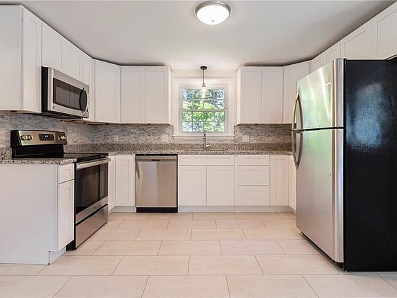 Sunny updated 3 bed, 1 and 1/2 bath cape with a finished lower level and large level yard. NEW kitchen with granite counter tops and stainless appliances. Open floor plan kitchen and dining room. Master bedroom has two closets. Updated baths with new granite counter vanities. New lighting. Meticulously painted interior and exterior. Newer electric panel. Hardwoods throughout including all bedrooms. Large front to back living room with brick fireplace. Plenty of room for a workshop in the two car deep garage plus a shed. The enclosed breezeway is prefect for on oversized mudroom which leads from the garage to the kitchen with access from the front and back yard.