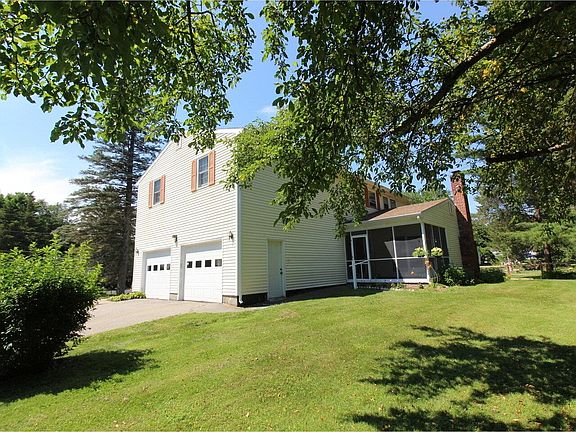 Discover this private Shelburne Colonial, perched on a hill at the end of a cul-de-sac neighborhood, ready for new owners to make it their dream home! This spacious residence offers 4 bedrooms, 2 full baths, and 2 half baths. The main level features a bright living room with a gas fireplace, dining/family room with hardwood floors and wood-burning fireplace, and kitchen with convenient main-level laundry closet. Unwind on the screened back porch overlooking a beautifully landscaped, partially-fenced yard – the perfect spot for morning coffee. Upstairs, the expansive primary suite offers 3 oversized closets, an en suite bath, plus sauna! The basement provides ample storage, while the property includes two garages: one attached garage with a high ceiling and car lift, plus a detached 2-car garage providing a total of 4 bays - ideal for car enthusiasts or boat or RV storage. With hardwood floors beneath most of the carpet, newer windows, and a heating system and roof less than a decade old, this well-maintained home has great bones and is ready for you to make it your own! Enjoy the nearby neighborhood park, plus close proximity to all Shelburne Road amenities, Lake Champlain, and Burlington.