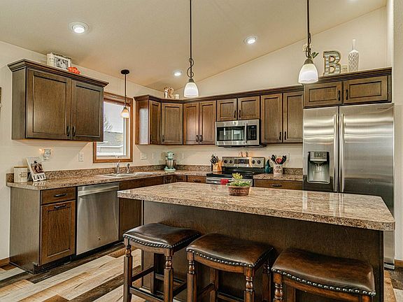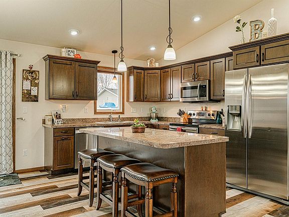 Welcome Home to this lovely 4 bedroom, 3 bathroom split level home in a great location! Main level living area has an open concept with vaulted ceilings and new flooring throughout. Kitchen area offers nice center island with seating and lots of counter space. Enjoy the view of your backyard from the kitchen window and sliding glass door in dining area. Master bedroom has a walk-in closet with a master en-suite. 2nd bedroom on main level with full bathroom next door. Basement living area is perfect for entertaining and more with stoned bar area and beautiful stone fireplace. There are 2 more nice size bedrooms in basement level with a full bathroom. Laundry room is also in the basement area. Extra storage is available under stairway in basement as well. This home has a finished, heated, and spacious, 3 car garage with water and floor drain. Back access garage door also leads to fenced back yard with pergola. Enjoy attached deck off the back of home with privacy wall. Shed will also give room for extra storage. Come find your next home at 95 Haywood Dr!