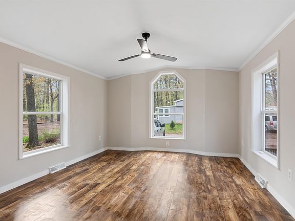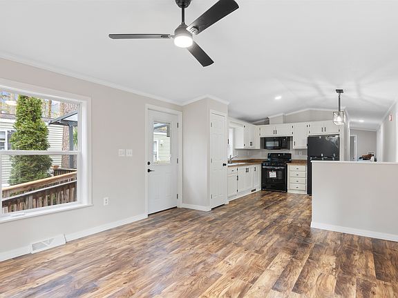 Freshly renovated and just steps from a private Lake Champlain beach, this home has so much to offer in both location and condition. This 2 bedroom, 1 bath home was manufactured in 2000 and sits only one home away from the shores of Lake Champlain. The interior has been fully renovated with new vinyl plank flooring, new appliances, freshly painted cabinetry, paint, trim, doors, fully updated bathroom (tub, vanity, toilet, tile flooring), brand new propane furnace, and lighting/ceiling fans throughout. The large and open living room offers great natural light. The kitchen is bright and clean with space for a dining area. Down the hallway you will find a laundry area, bedroom 1, fully renovated bathroom, and large master bedroom. The windows are double pane vinyl, vinyl siding and skirting, with a front deck with glass pergola. The yard is fenced and there is a barn style outbuilding for storage or workshop. This conveniently located home is close to Burlington, Airport Park, walking trails, private beach access, and shopping.