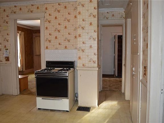This 4 Bedroom 2 full bath Home has much potential. Home Warranty included. Tear off Roof less than 7 years. High efficiency furnace 2013, Hot Water Heater 2014. First floor has a bedroom and full bath, large eat in kitchen, walk in pantry, large living room, dining room and office/den space. Second floor has 4 rooms, one which has a sink and cabinetry for storage in addition to a full bathroom. Being sold in As is condition.