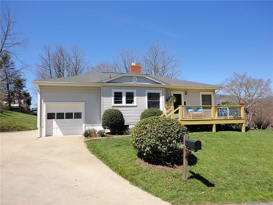 Seriously charming cottage w/sweeping long range mountain views. Light filled living area w/fireplace & graceful archways, original refinished hardwood floors, eat in kitchen, brand new deck, full basement with wood-stove & inside/outside entrance. Level backyard with private patio and amazing custom fire-pit. Home has been meticulously maintained and well loved! The yard is fabulous & the neighborhood is established and friendly. Great location with easy access to Asheville and/or Waynesville.