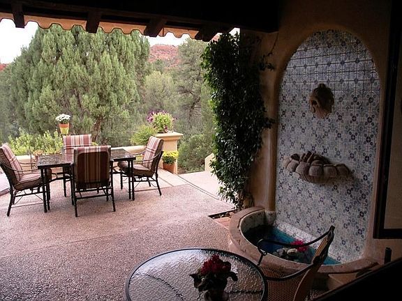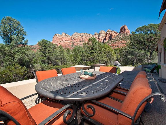 The epitome of Southwest living in Sedona, this is the perfect blend of fantastic red rock views in a gorgeous 1-acre private setting, a gracious modern floorplan, a home that's beautifully updated, and upscale Southwest design touches that merge with the luxurious and flawlessly appointed treatments. This home exudes warmth and character, from the front entry gate and courtyard to the open back patio overlooking a border of trees and unimpeded red rock views, from the bright entry foyer and elegant Gourmet Kitchen, to the delightful Living Room and adjacent spacious Media Room/Study, this single level sophisticated Southwest home is truly a Sedona gem The Kitchen has been completely updated with granite countertops and new cabinetry, Electrolux appliances, large island, walk-in pantry,