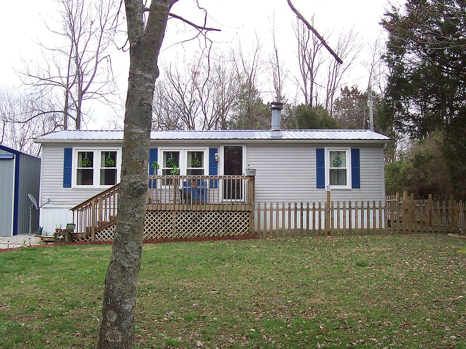 This two bedroom, 1.5 bath double wide home and detached garage sits on three lots just above Rough River Lake in beautiful Whispering Subdivision. There is a community area to access the lake. Close to Peter Cave Marina. Appliances to remain; washer and dryer.