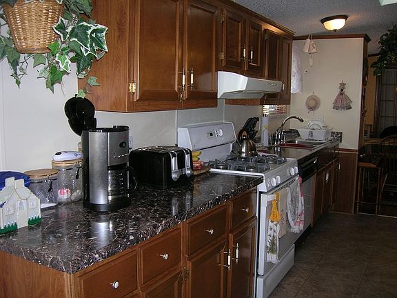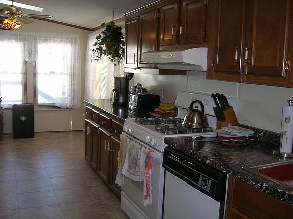 BEAUTIFUL, well maintained double wide Mobile home in desirable park. Large kitchen with lots of cabinets and counter space, appl. remain, vaulted ceiling, skylight and dining area. Washer/Dryer off kitchen (w/d remain). Living room and dining room open to each other. Dining room with built in storage cabinet, living room spacious with fireplace, laminate floor and ceiling fan. Master bedroom has wide door opening to accommodate wheelchair, laminate flooring, walk in closet and French doors into large master bath that is also handicapped accessible with walk in shower, large vanity and vinyl flooring. Bedrooms 2 and 3 are good size with large closets and carpeted floors. Many updates including newer roof with 30 yr. warranty and new skylights when roof done, newer windows (5 yrs), new gas furnace (1 yr.). Handicapped ramp and two sheds. Lot fee $231.27. Much of home contents also for sale. Come see for yourself!