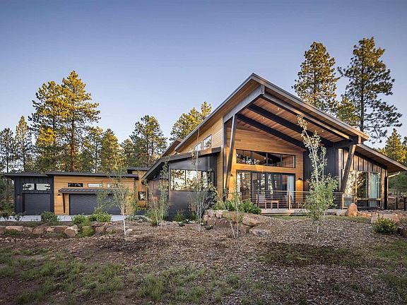 Welcome to your dream modern mountain retreat, a haven of contemporary luxury nestled in the tranquil beauty of Edgemont Highlands. Crafted with meticulous attention to detail by Classique Builders in 2022, this stunning one-story home is a masterpiece of design, boasting unparalleled craftsmanship and high-end finishes at every turn. Set upon a private wooded lot spanning 0.62 acres at the end of a serene cul-de-sac, this residence offers the perfect synthesis of tranquility and convenience. As you approach, the striking exterior immediately commands attention, seamlessly blending elements of Bridgersteel, hot rolled steel panels, and smooth cedar siding with the natural landscape. A standing seam metal roof with snow bars ensures both durability and aesthetic appeal. The three-car garage, featuring epoxy floors, not only provides ample space for vehicles but also contributes to the home's contemporary allure. Step inside, where expansive plank engineered wood floors guide you through the open and airy floor plan. The heart of this home lies in its spacious kitchen, a chef's delight equipped with top-of-the-line appliances, including a 48" dual fuel range with double ovens and a GE Cafe built-in refrigerator. Deluxe quartz countertops adorn the large island, offering both functionality and elegance. A generous working pantry ensures that all your culinary needs are met with ease. Adjacent to the kitchen, the inviting living room beckons with its vaulted ceilings and custom wood beams, creating a warm and inviting ambiance. Sliding glass doors seamlessly merge indoor and outdoor living, leading to a large covered patio where you can savor breathtaking mountain views while entertaining guests or simply unwinding in peace. Retreat to the luxurious primary suite, a sanctuary of comfort and style. Sliding glass doors open to a private flagstone patio surrounded by a rock wall and wrought iron fence, providing a secluded outdoor space to relax and recharge. The ensuite bathroom is a spa-like haven, complete with a soaking tub, dual vanities, and a spacious walk-in closet outfitted with built-in drawers and shelving. Two additional bedrooms, each boasting its own ensuite bathroom, offer comfort and privacy for family or guests. A large library, featuring custom built-in cabinets and bookcases, provides the perfect setting for both work and relaxation. Soft-close all-glass barn doors add a touch of sophistication while maintaining an open and airy atmosphere throughout the home. Indulge in the comfort of in-floor heating with an integrated humidifier, ensuring optimal comfort year-round. Step outside to explore the expansive backyard, where lush professional landscaping and a sprinkler system enhance the natural beauty of the surroundings, creating a tranquil outdoor retreat. Kolbe windows and doors frame picturesque views while offering energy efficiency and durability. Inside, 8ft interior doors and large wood accent beams in every room contribute to the home's modern aesthetic. Quartz countertops grace all bathrooms, the laundry, and the pantry, combining elegance with practicality. Custom cabinets from Aspen Design Studio provide ample storage space and sleek design. Stay entertained with two fireplaces, one in the library and one in the living room, creating cozy atmospheres for gatherings or quiet evenings at home. A Sonos and Frame TV package in the living room, complemented by Sonos in-wall speakers, offer a premium audiovisual experience. Experience the ultimate mountain lifestyle in the sought-after community of Edgemont Highlands, where miles of hiking trails, a clubhouse, and a strong sense of community await. Don't miss your chance to make this exceptional property your own. Schedule your showing today and start living the mountain dream!