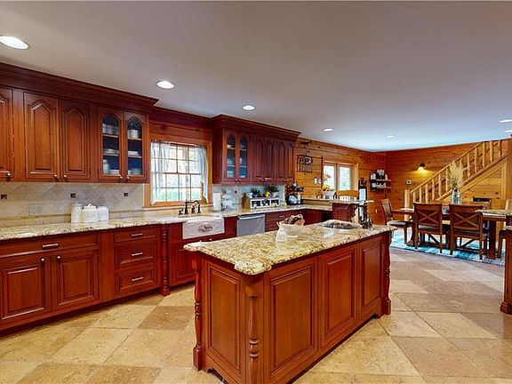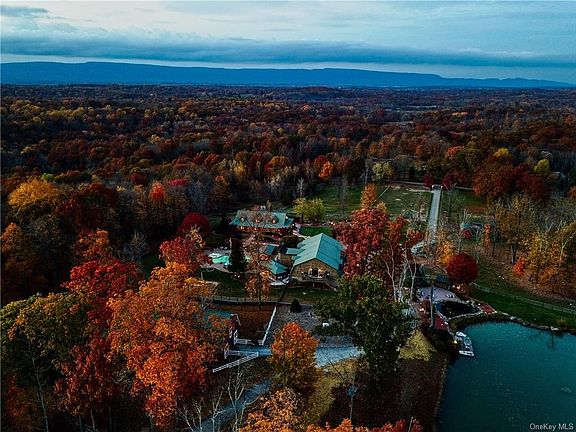 One of a kind expansive retreat nestled on 38+ private acres with stunning views of the gunks. Enter through the gates into this custom-built compound, a perfect place to entertain & keep your 4 legged family members. The main 3 bedroom 2 1/2 bath log cabin style home has a massive floor to ceiling stone fireplace, open layout floor plan, full wrap around porch, custom chefs kitchen with six burner stove, custom in-ground pool with waterfalls, spa & water slide, pool house & volleyball court. Multiple patios equipped with grills, koi pond, waterfalls, & self-feeding pond stocked with fish. For car & motorsport enthusiasts a 2 story showcase garage plus a working garage, suitable for the most dedicated hobbyist. Animal lovers will love the barn with 5 horse stalls and the numerous outbuildings in which to house their animal friends, large & small. Above the garage, 2 legal accessory apartments (3Bd+1Bth) perfect for entertaining long-term guests or air BnB.
