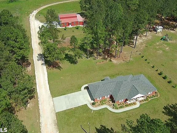 Brewton, AL- McCall Community! This is the perfect area for a newly built custom home complete with 2 acres and 46x42 three door garage. The 2014 home boasts a split floor plan of 3 bedrooms, 2 bathrooms and 2069 sqft. All bedrooms have walk-in closets. Inside, the spacious family room has a vaulted ceiling, making it an ideal gathering spot. The cozy kitchen bar overlooks the dining area and family room. Seller states the stove can easily be converted to gas. The master suite is a comforting sanctuary with a master bath that conveniently services two and is handicap accessible. Attached to this lovely home is a double enclosed garage with extra insulation in the walls and above the garage. Entire property has underground power. The detached 46x42 garage is fully equipped with power, water, full hookup for a camper and 42x12 back lean-to. Two of the three garage doors are 8x9, one of which opens to a 16x8 air conditioned work shop with half bath, and the third/middle 14x14 garage door opens to a 17x41 camper garage. This area has an interior height of 18 ft to comfortably house your recreational vehicle with an indoor 30 AMP breaker plug and dump station transferring to the septic tank. There is an additional 50 AMP breaker plug and dump station, that also transfers to the septic tank, near the house. Vinyl Cedar Shake on the front of the house beautifully accents the finish of this unforgettable home. Plenty of property for your own garden and to just enjoy the country side. Call now for your private tour!