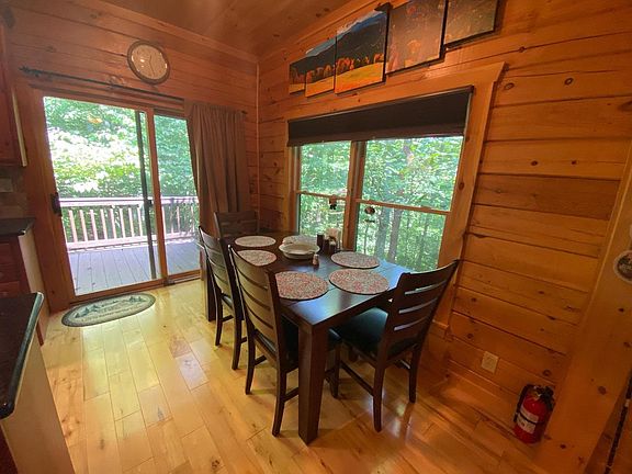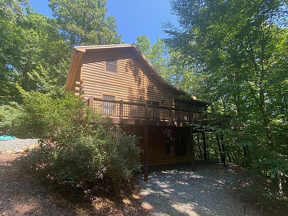 Opportunity of a lifetime... This classic rustic style mountain lodge is tucked away privately on a spacious 2+ acre lot just minutes from all your hearts desires. This luxurious cabin boasts 5 bedrooms, 3 full baths, all wood interior, plenty of natural sunlight, soaring cathedral ceilings, wood-burning stove, hardwood floors, granite countertops, and so much more. Walk upstairs to the spacious open loft as the master suite with a private bathroom. The finished basement offers its own separate living quarters with a living room/den/REC room, kitchen and dining area, 2 bedrooms, 1 full bath, and a second laundry hookup. Enjoy the gated community of Ridges Over the Lake on Lake Blue Ridge just minutes from downtown Blue Ridge and in close proximity to hiking/biking trails, Merciers Orchards, and so much more. You don't want to miss this one...