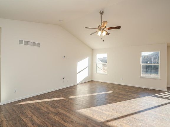 This brand new McBride Homes Maple Ranch 3BR 2BA home will be move in ready December 2022! Three car garage! Perfect for entertaining with an open floorplan, vaulted ceilings and wood laminate flooring. The kitchen features level 4 Benton White 42” wall cabinets, large square center island with breakfast bar, and stainless steel GE appliances. The master suite features a walk-in closet and master bath with double sink vanity and walk in shower. Two additional bedrooms and hall bathroom. White six panel doors, open spindled staircase to basement, 6ft windows, main floor laundry room, upgraded lighting with ceiling fan in family room and prewires in all bedrooms, recessed can lights, and more! Located off Lamar Parkway and Old Gray Summit Road, The Manors at Brush Creek will have a total of 45 homesites. Enjoy peace of mind with McBride Homes’ 10 year builders warranty and incredible customer service! Similar photos shown.