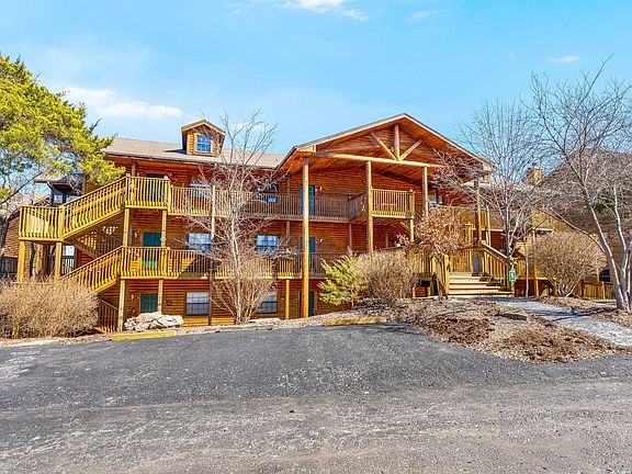 Log Cabin Condo with LAKE VIEW only 2.5 miles from Silver Dollar City in Branson! Located at The Village At Indian Point Resort on Table Rock Lake, this 2 Bed, 2 Bath, 955 SF Condo comes Fully Furnished & Stocked, ready for Optional Rental Program if you wish! Enjoy the Amazing Lake View from the Fully Furnished Back Deck and sit by your Stone Wood Burning Fireplace in the Leather Living Room Furniture! Walk out to the Rear Deck from the Living Room and the Master BR! Features Extra Coffee Nook off Kitchen & Breakfast Bar, Custom Upgraded Lighting throughout, Tile & Carpet floors, 5' Walk-In Shower in Guest Bath & Whirlpool Tub-Shower in Master bath. Quiet & Beautiful Location! You'll love the Trees, Wildlife and Walking Nature Trails! The award-winning Resort Amenities are steps away... Relax in the Great Room at the Clubhouse, take a swim in the Zero Entry Outdoor Pool, Heated Indoor Pools & Hot Tub Spa, Catch a workout in the Fitness Center, Relax in the Infrared Sauna, and walk down to the Fishing Dock! And the kids can play at the New Playground! You don't want to miss this one - there are So Many Reasons why You'll Love this Condo with a Great Lake View!