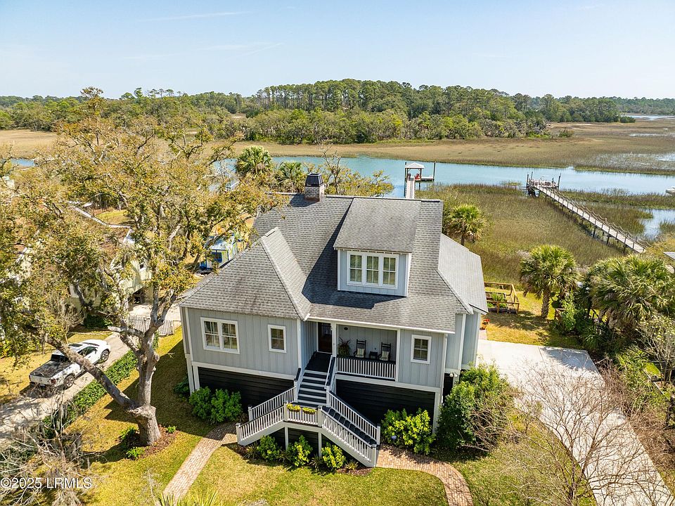 From the moment you step inside, you're welcomed by the warmth of the wide-plank heart of pine floors and beautiful wooden doors that open to a gorgeous all-season sitting room—the perfect place to take in breathtaking east-facing sunrises over the water. Thoughtfully designed, this three-bedroom, three-bathroom home offers effortless flow, with the main level featuring two spacious bedrooms, ample storage, and a truly exceptional walk-in butler's pantry—perfect for entertaining and storage. The kitchen has been updated with new granite countertops and offers an open flow into the dining area that boasts creek and marsh views from every window. Upstairs, a loft area provides additional flexible space, leading to a private second master suite, ideal for guests or a luxurious retreat. The home has been meticulously maintained, with key upgrades including well-manicured landscaping, raised bed gardens, a rebuilt dock with a covered pierhead, and a generator hookup for peace of mind. Enjoy fishing, crabbing, and birdwatching right from your private dock, embracing the ultimate Lowcountry lifestyle.