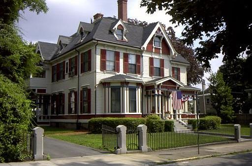 Built in 1876 for Peleg Howland this spectacular 14 room Victorian in the East Lake style in prime NB neighborhood offers everything for the discriminating buyer. Unique floors, including 3 in the basket weave pattern, pristine cherry, mahogany and oak woodwork, breath-taking staircase, 3 levels of living space, 6+ sleeping rooms, 9 fireplaces, large modern kitchen w/ breakfast nook and doors to private deck PLUS a 2 level carriage house AND oversized 3 stall garage. Ideal home office.