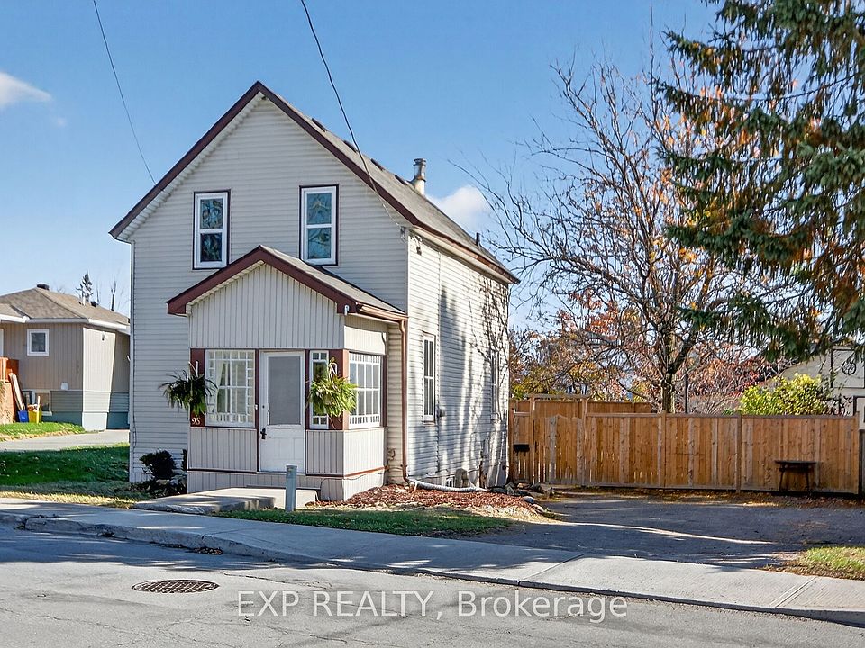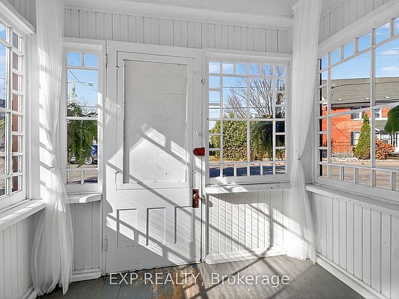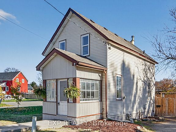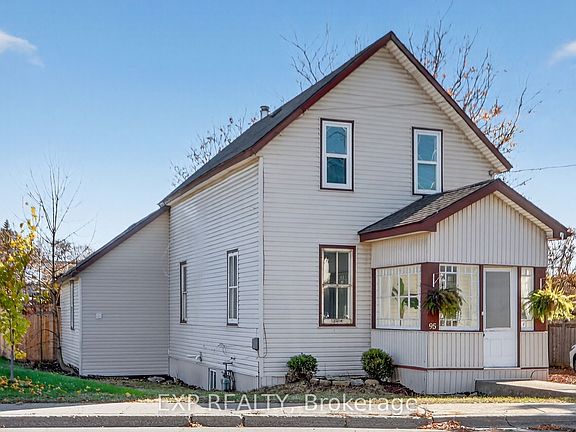 Experience the timeless appeal of 95 Main Street, a charming 1900 Victorian home in the vibrant heart of Almonte. Rich with original character, this vintage home features wide baseboards, lofty ceilings, and a classic 3-season front porch-perfect for morning coffees and warm welcomes. Inside, modern comforts embrace historic charm: easy-care vinyl flooring runs throughout the main level, complemented by newly replaced windows that fill each space with natural light.The open, sunlit living room flows into a large dining area anchored by a cozy wood-burning stove-a perfect gathering spot on winter evenings. The homey kitchen is equipped with stainless steel appliances and convenient in-unit laundry, while the attached shed offers added storage and handy backyard access. Upstairs, unwind in a vintage-inspired bath with a claw-foot tub and pedestal sink. The bright, spacious primary bedroom boasts high ceilings and plentiful storage, and two additional bedrooms (one with a closet, the second without). Plush comfortable carpeting throughout the second floor. Outside, find tandem parking for four vehicles and a fully fenced, generous yard with a large deck-an ideal retreat for children and pets. Moments from the OVR Trail, library, and the shops and cafes of Mill Street, this is Almonte living at its best. Welcome to 95 Main Street ~ a beautiful blend of history, comfort, and community.