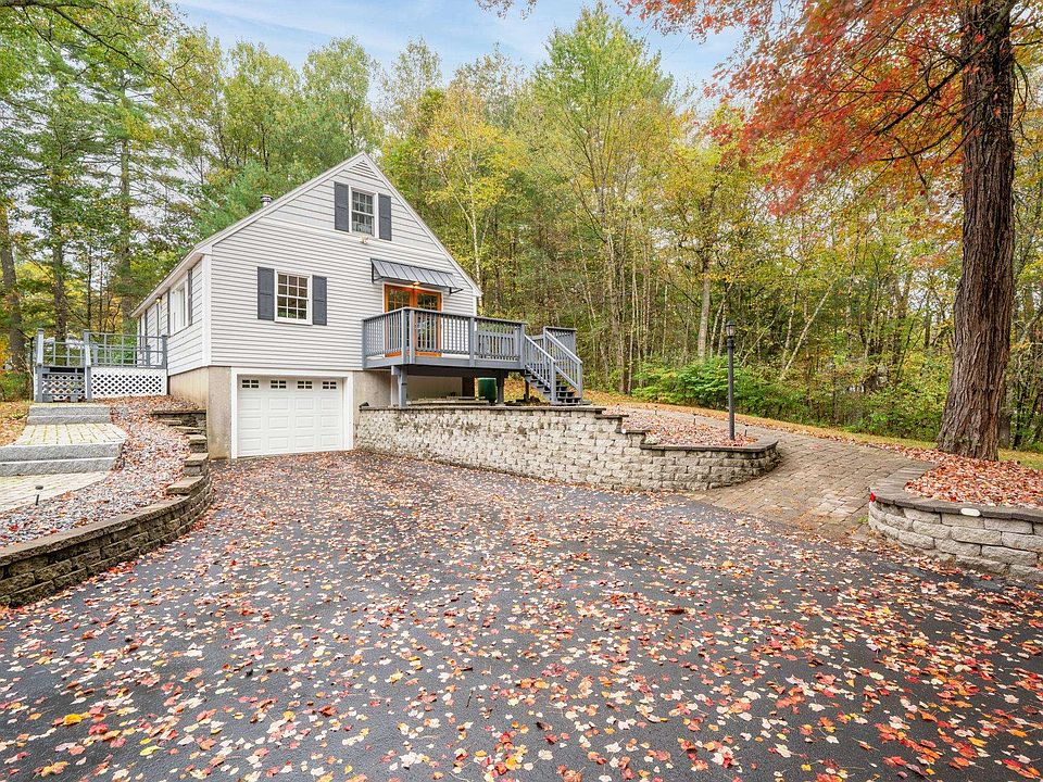 Welcome to this charming Cape-style home in the heart of Londonderry, known for its top-rated schools, vibrant community, and excellent commuting location. This home offers flexible living space with up to four bedrooms, including first-floor options. The primary suite features a walk-in closet and updated ¾ bath. The kitchen and baths showcase unique European inspired design, with hand built cherry cabinetry, slate farmhouse sink and counters, and a commercial grade stove with grill and convection oven. The spacious living room is highlighted by built-in cabinetry and a wood stove. Hardwood floors flow through the main level with cozy carpeting upstairs, where skylights bring in natural light. Recent updates include fresh paint in most rooms and 2023 hardscaping with granite and paver walkways and walls. The unfinished lower level offers potential for expansion or storage. Outside, relax on the new deck overlooking the yard, or explore nearby orchards, walking trails, and local amenities. From here you’re minutes from MHT Airport, with an easy commute to Boston for work or entertainment, and about an hour to both the NH Seacoast or Lakes Region, making this an ideal spot for work and play. Combining character, thoughtful updates and convenience, this Londonderry home is a perfect fit for anyone looking to enjoy peaceful living while staying connected to New England’s major destinations. Delayed Showing until Open House Saturday 10/18/25 11AM-1PM.