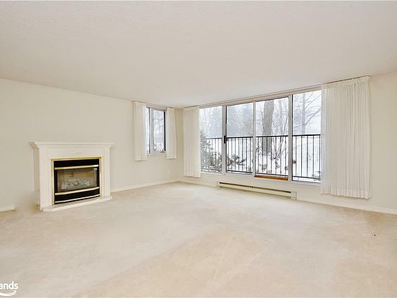 Spacious Downtown Condo! Welcome to your dream home at The Curtmoor! This 2 bedroom plus den/office condo offers a perfect blend of space and comfort. Nestled in Orillia's exclusive North Ward neighbourhood this property is a true oasis of tranquillity while being just minutes away from downtown. This secure building offers key and remote access to the attached underground parking that features heated access driveways. The newly updated hallway interiors create an inviting atmosphere. Enjoy unparalleled vistas from every angle, neighbourhood lights sparkling at night or lush greenery and mature trees during the day. The open living spaces are flooded with natural light. The living room seamlessly connects with the dining room, making it ideal for both entertaining and everyday living. The eat-in kitchen features custom cabinetry, pot and under cabinet lighting, ample counter space and a breakfast bar. Retreat to the private primary suite with an ensuite bathroom that is complete with walk-in shower and dual vanities, access is through the spacious walk in closet. Step outside to your own private balcony that extends your living space. The landscaped garden and manicured lawn offers a sitting area perfect for visiting. You will be able to walk to parks, trails, trendy boutiques, restaurants, coffee shops, cultural attractions and public transportation. Easy access to major highways ensures a quick commute to nearby city centres. Secure parking and main door for peace of mind and a common party room that encourages a sense of community. Key Features: 1890 square feet, 2 bedroom plus den/office that can be used as a third bedroom, 2 full bathrooms, separate in suite laundry room and storage room. Heated floors in both bathrooms and kitchen. Extra open common storage for bikes available in the underground parking. Don't miss the opportunity to own this extraordinary residence. Book today to schedule a viewing and make this your new home.