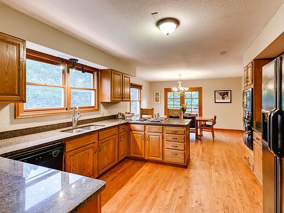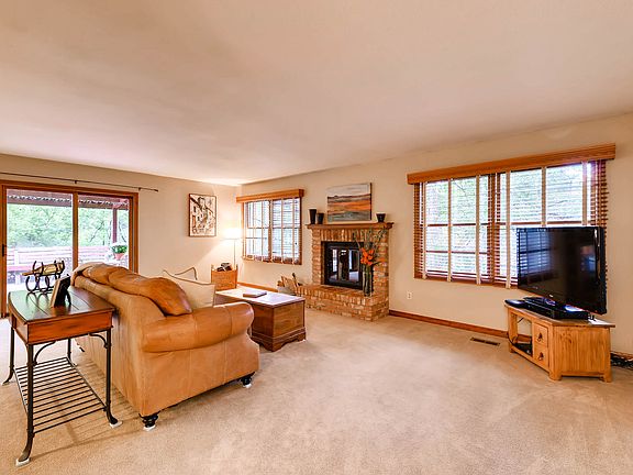 Welcome home to this unbelievable location in the canyon. This ranch style home offers a peaceful setting within walking distance to the Broadmoor. Enter into a open floor plan, big kitchen with hardwoods and granite, and comfy living room with a wood burning fireplace. 2 bedrooms upstairs each with adjoining bathrooms and new carpet. Walk out basement with additional family room and another bed/bath. Enjoy the sounds of the creek and the trees on the large deck off the living room/kitchen. Plenty of storage in basement for all your outdoor activities. This is a gem in district 12, don't miss out.