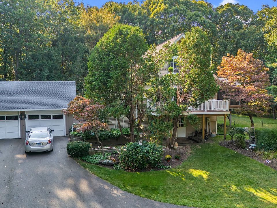 Welcome Home! This beautiful, unique 3 bedroom, 2 bathroom Cape Cop style home sits on a 1.37 acre rear lot at the end of a picturesque tree lined road, surrounded by Nassahegon State Forest, affording serenity and privacy. The main level of this home features a gorgeous, remodeled kitchen with granite countertops and a large island open to the dining area and sliders to the sunporch also open to the living room with wood stove and French doors that open to a new, large composite balcony, the living room also open to a solarium room with new skylights, perfect for sitting area, work out area or office, a first floor full bath with laundry and a first floor bedroom with coffered ceiling and sliders out to a new rear deck. Upstairs you will find a large primary bedroom with palladium window, cathedral, wood planked ceiling with beams, double closets and an alcove area perfect for home office/nursery, a second bedroom with cathedral, wood planked ceiling and beams Large basement with French door walkout with potential to be finished. Also a two car garage, central air, professionally landscaped. More upgrades to this extremely well maintained home include : Artisan Builders -New roof, skylights and gutters 8/23, Valley Chimney - chimney swept 7/23, Quinocco HVAC - furnace cleaned and serviced annually - 1/24, Burlington Septic - pumped 7/23, Duct Works- new A/C capacitor 6/24. Snow blower, wheel barrel and garden tools included with the sale. Need 24 hours notice for showings Upper level remodeled full bath.