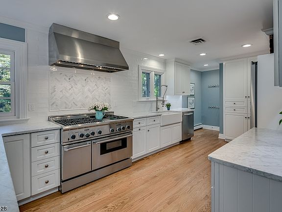 Fabulous renovated 4BR Ranch located in desirable area of Bernardsville very near the Somerset Hills Country Club. New kitchen boasts marble counters, SS appliances, farm sink & NEW dual fuel Italian 48" range. Move-in ready with white picket fence, beautiful grounds including gunite in-ground pool and lush landscaping. Finished lower level walk out basement complete with bedroom, office, living room, kitchenette & all new carpeting. Attached oversized 1 car garage. Hardwood floors throughout first level. Updated bathrooms, new roof, newer water heater, new gutters, interior & exterior painted. Walk to town.