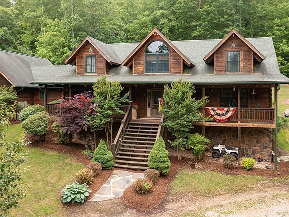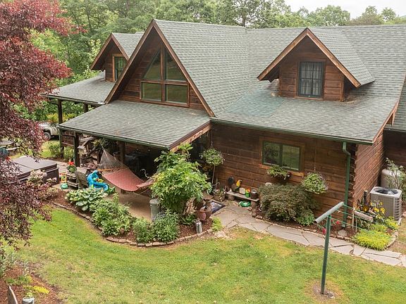 CABIN SWEET CABIN! THIS is a true WORK OF ART! One of a kind, one owner on over 12 acres of land, privacy galore! Built with attention to detail you will instantly fall in love! From hand hewn CEDAR trees as support beams, to gleaming hardwood floors throughout, there is too much here to take in only in one visit! Tree lined driveway opens up to the HUGE front porch, be mesmerized front the second you walk in the front door with warm wood surrounding you! Soaring ceilings, stone fireplace & MAIN FLOOR MASTER just to main a few things! Open loft above leads to two large bedrooms & don't miss the basement, finished with enormous family room, complete with a second FULL kitchen! Ideal for Inlaw quarters, teens or extra income potential? Make your dream come true in this one of kind home!