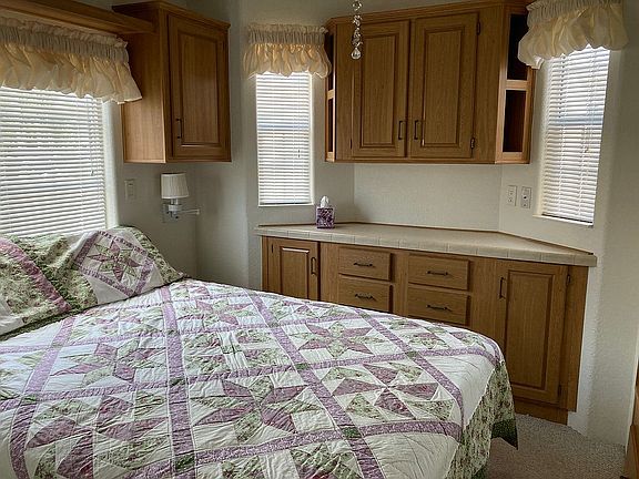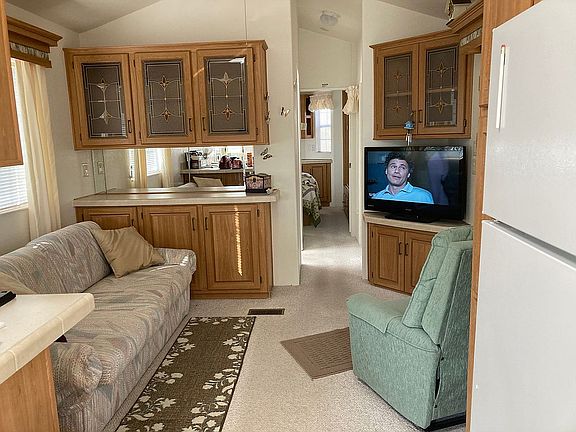 Fully furnished park model located in a gated 55+ community in Star Valley (Payson), Arizona. Summer getaway of full time living. Enjoy the weather and the views in this fully furnished one bedroom, one bathroom model. Just bring your clothes, toothbrush & food. Includes TV, vacuum, sofa sleeper in living room, all pots, pans, dishes, coffee maker, toaster oven & more. 10 x 10 storage shed included. Single carport/patio area. Space rental is $6,100 per year paid annually & includes cable, water, trash & security gate. Community has an onsite laundromat & clubhouse.