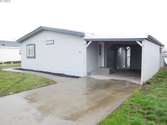 This park is undergoing a terrific facelift, and this home is ready to impress! 4 bedrooms, 2 bathrooms; Bright and cheery kitchen has fridge, range and dishwasher, plus the coveted breakfast bar. Attached carport with garden shed, fenced backyard has lush green grass. This park has a great layout, large lots, nice wide streets. Look at the pictures then picture yourself living here! No age-restriction in this park.