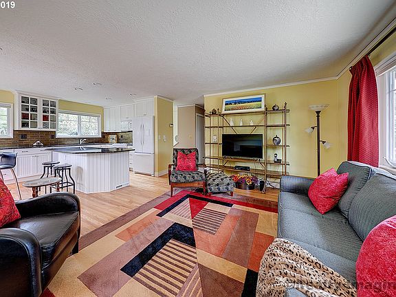 Move in ready do not miss! Fabulous open concept living. Remodeled kitchen with cabinets and quartz counters galore. Kitchen island,eating area, french doors to a large wrap around deck that looks over the vast sweeping yard that boasts fruit trees, separately fenced garden area, raised beds. Remodeled baths. New windows in 2006. Large family room with gas fireplace and sliders out to patio and back yard. Extra deep oversized garage.
