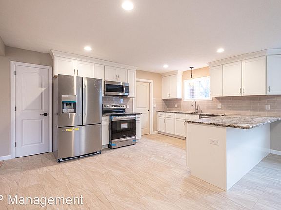 Renovated 3 BR Single Family - Completely remodeled single family home now available! Conveniently located next to Elms College. 2 car attached garage and off-street parking. Small private backyard perfect for entertainment. Kitchen space is brand new with white cabinets, granite countertops and stainless steel appliances (fridge, range, dishwasher and microwave). Dining area in kitchen area. New tile flooring in kitchen. Goes right into huge open living room area with a fireplace. Hardwood flooring throughout. Master bedroom has a walk-in closet and full bathroom with stand-up shower. Two other bedrooms have closet space. An additional full bathroom off the hallway. Washer and dryer hookups on the same floor. Additional sunroom with fireplace. Newer utilities with gas furnace and central AC. Tenant pays for heat, hot water, AC and electric bill. Tenant is also responsible for lawn and snow care. Water and sewer and trash and recycle included. First month and security to move-in. (RLNE5514414)