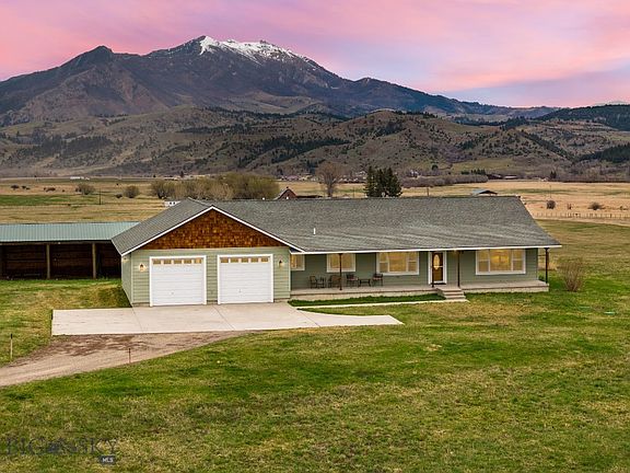 Discover the epitome of serenity at 95 Nickols Peak Trail, where breathtaking 360-degree views encompass the Bridger and Gallatin Mountain Ranges. This impeccable residence, situated on nearly 20 acres, beckons with an open floor plan that exudes warmth and hospitality upon entry. Indulge in the primary bedroom's panoramic vistas through north and east-facing windows, complemented by a luxuriously appointed bathroom featuring a dual vanity, a separate shower, and a soothing soaker tub—your private retreat after a day's endeavors. The two spare bedrooms offer both spaciousness and stunning views of the Bridgers, each adorned with ample closet space. You’ll appreciate the convenience of a walk-in laundry room, strategically placed just inside the expansive heated garage. The oversized double doors ensure ample room for both vehicles and recreational gear, reflecting the outdoor enthusiast's dream. From the comfort of your living room, witness the passage of elk and a myriad of wildlife, creating a living canvas of nature's wonders. Strategically located just minutes away from the newly established Mt. Ellis Fire station and in proximity to Mt. Ellis Academy, Elementary, Montana State University, Museum of the Rockies, Hyalite Canyon, and Petes Hill—every convenience is within a 10-15 minute radius. The property enjoys swift access to I-90, seamlessly blending rural tranquility with the vibrancy of Bozeman's heart. Exceptional recreational opportunities beckon from a short distance, allowing you to savor the best of both worlds. Rural charm meets urban accessibility, making this residence a coveted gem in Bozeman's real estate landscape. Seize the opportunity to experience the allure of this Montana property; contact your preferred agent today. Per County this almost 20 acres can be split in half! This Bozeman gem is an absolute must-see—your gateway to unrivaled beauty and comfort awaits.