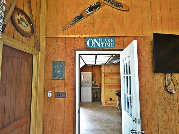 Water Access Property! Welcome to the Crappie Capital of the South, just minutes from 2 public boat launches. Level Lake View 1.04 acre lot with granted lake access located in a quiet golf cart friendly neighborhood. Features include a 50x36 covered area with electrical, water, gas & sewer connections for 2 large campers, 400sqft heated/cooled studio with kitchen furnished with stainless steel appliances, remote control 12ft. insulated garage door to allow indoor/outdoor living, laundry area, bathroom & shower room. Additionally this home has a 20'x16' covered patio with 3 large roll up garage doors, 55" TV & gas line for heater to allow year round enjoyment! Bring the RV & the family!