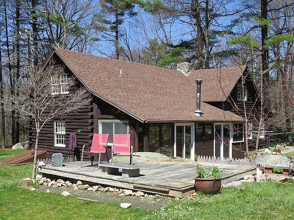 Calling all outdoor enthusiasts or those with horses! This spacious log home provides the best of both worlds -- just 4 miles to vibrant downtown Amherst, arts, fine restaurants, and academia; yet situated in a quiet natural area with 1200 acres of conservation land directly out your door. This property offers a 3-stall barn with fenced grazing pasture, metal roof and 300 hay bale loft. Inside you'll find a cathedral ceiling with newly finished pine floors, two wood stoves to supplement your heating, and a cozy sunroom with a wall of windows that look out over the land. For the buyer interested in more sustainable living there is passive solar heating opportunities along with perennial and vegetable garden space and access to trees for firewood. The current owner has created private guest quarters on the first floor with a kitchen and separate entrance. Perfect as an in-law suite for parents or teens or easily converted back to traditional bedrooms. A unique find so close to town!