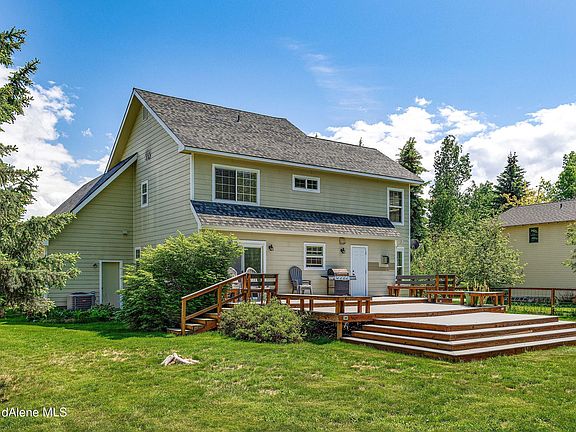 SECONDARY WATERFRONT HOME IN DESIRABLE PONDER POINT! This 1900+Sq Ft, 3bed/2.5 bath home features covered front porch entry, Wood laminate floors in living & formal dining rooms, bright kitchen open to informal dining area, laundry and 1/2 bath on main level. Second level features 2 bedrooms, full bathroom & master suite with vaulted ceilings & attached bath with double sinks. Nicely landscaped & situated on .40 acres with fully fenced backyard, huge Trex deck for entertaining, storage shed, mature trees creating a private setting! Located minutes from private community waterfront access on Lake Pend Oreille with sandy beach, dock and boat launch. Air conditioning, new furnace in 2018 & a new gas fireplace that will work if the power goes out. along with new flooring on the second level. All appliances stay. Broadband internet provided by Vyve. Convenient location minutes to shopping, downtown Sandpoint and the base of Schweitzer Mtn. Ski Resort.