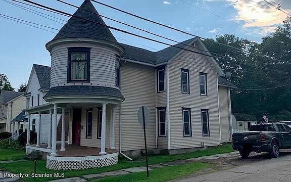 Fabulous 4 bedroom home in the heart of downtown Tunkhannock loaded with character. Inside you'll find a large eat in kitchen, a formal dining room with a stairway to the second floor and a cozy family room centered around a beautiful fireplace. The living room features hardwood floors and plantation shutters. There's an amazing den with built in shelves perfect for a home office, a playroom or whatever you can imagine it to be. The front entrance double door takes you straight to the foyer with a magnificent custom wood staircase leading to the 4 bedrooms on the 2nd floor. A master bedroom complete with a porch/balcony for a relaxing outdoor sitting area. And this Victorian comes complete with a large bedroom in the Turret. A fantastic corner lot with a large fenced yard, an oversized shed and a driveway for 2. This charming home needs to be seen and is ready for you to move right in.