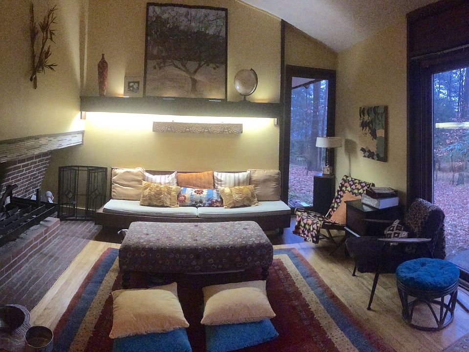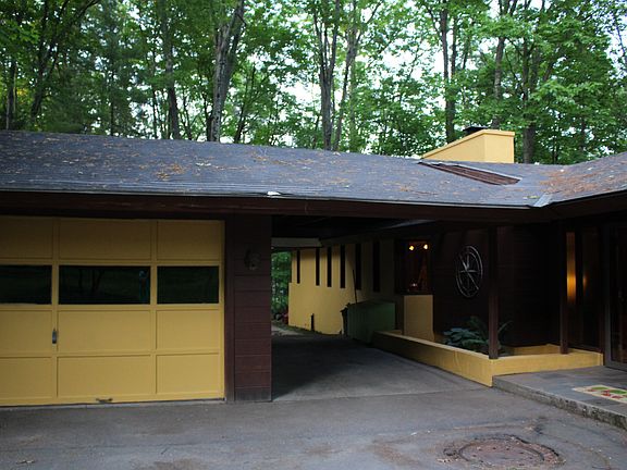 A secret garden awaits at this Frank Lloyd Wright inspired, Mid Century Modern architecturally designed Contemporary Ranch. A large, partially wooded lot is a plethora of mature perennial gardens, flowering bushes and trees. Offering passive solar orientation, the floor plan is open and inviting and includes many built-ins as well as vaulted ceilings and hardwood floors. Exquisite goshen stone patio with terracing and stone walls provide an abundance of outdoor entertaining spaces. One car garage and carport a plus. Walking distance to downtown,area colleges and schools - a delightful place to call home!