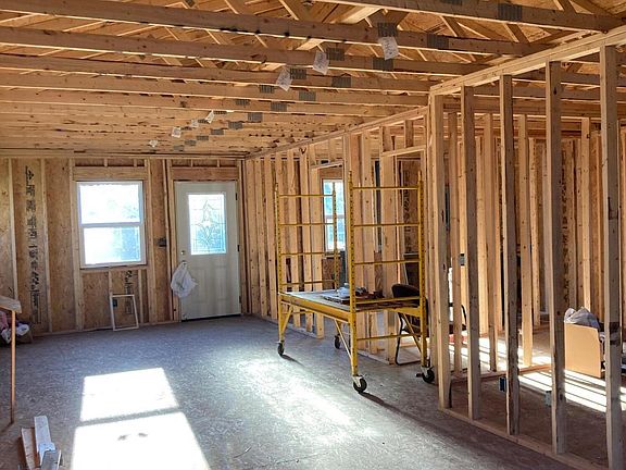 Two car garage built new in 2021 is plumbed for a half bath. The owners started the house but it needs finished-come and make it your own!