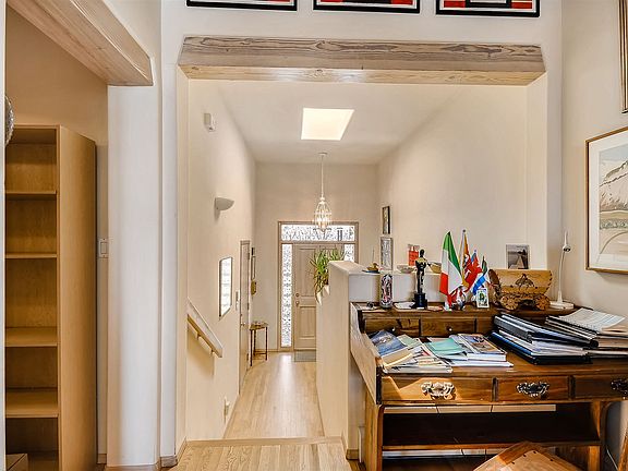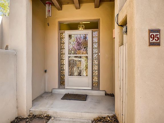Enjoy the shelter of the trees and the quiet night skies from the beamed living room in Plaza Solana, a townhome just above Casa Solana. The inviting foyer is large and full of light. High beams and custom bookshelves in the main living area provide space for your library and wall space for art. The efficient kitchen is open to the gracious dining room and upstairs balcony. There is a fenced downstairs patio from the owner's suite. Very private. Two and a half baths, wood burning fireplace. Newer refrigerator and washer/dryer. Transferable roof warranty. The Downtown Plaza, Alto Street Park, and DeVargas Mall are nearby and easily accessible.