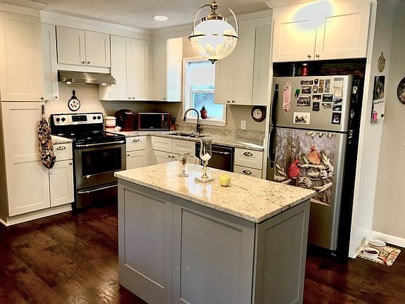 Beautifully updated home in the town limits of Franklin! Inside you will find a welcoming open concept floor plan with elegant light fixtures and new floors. The kitchen features granite countertops, stainless steel appliances, center island, and extra deep dual sink. The bonus room has tasteful French doors that lead out to a small patio and a warm fireplace. The two baths have been fashionably updated with ceramic floors, raised vanities, and subway tile in the shower. All three bedrooms have new carpet and all the windows in the home are new dual pane thermal windows. The large front yard is gently sloping and is bordered by a small white picket fence.